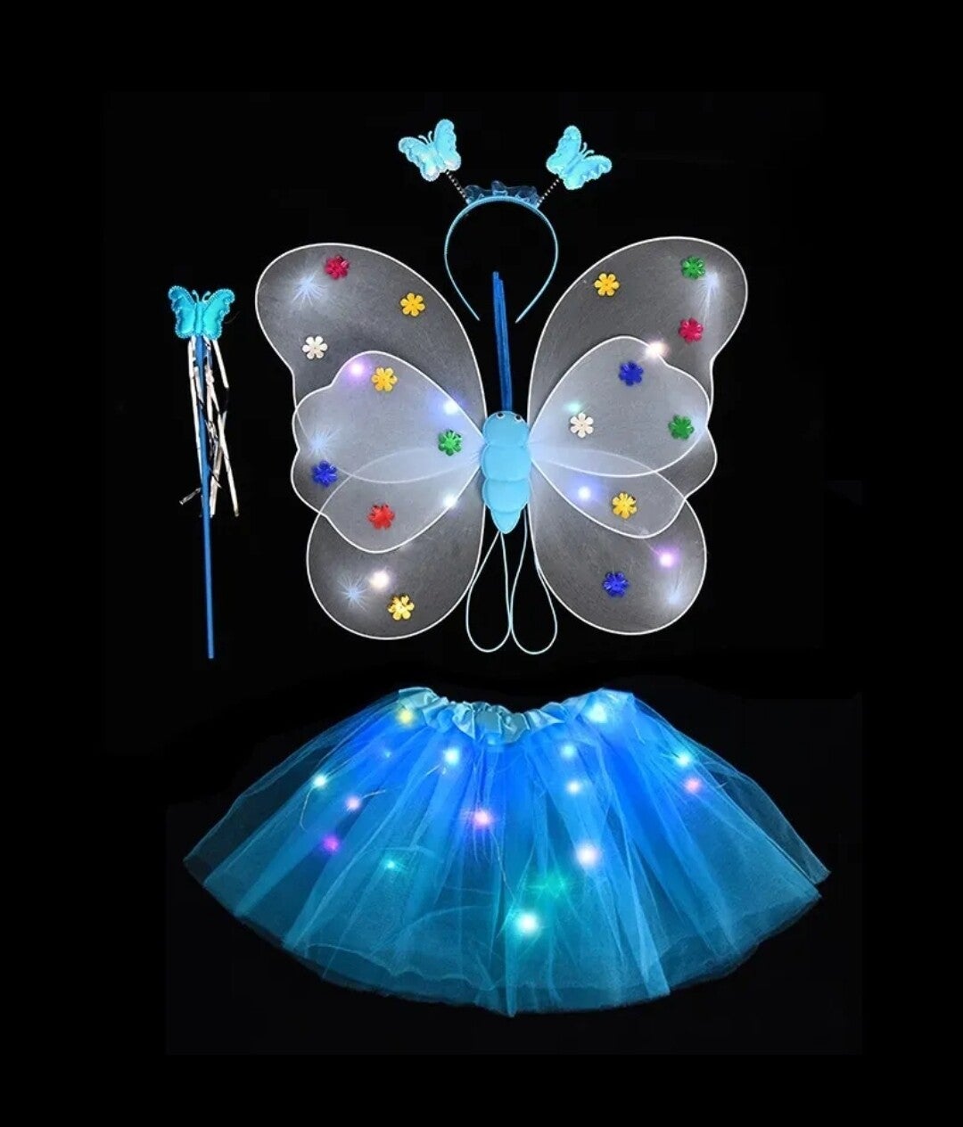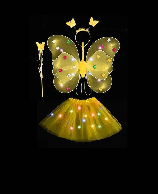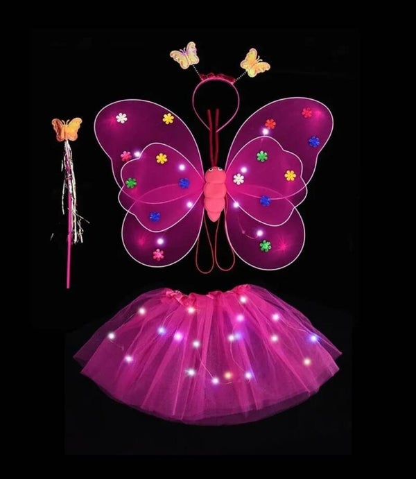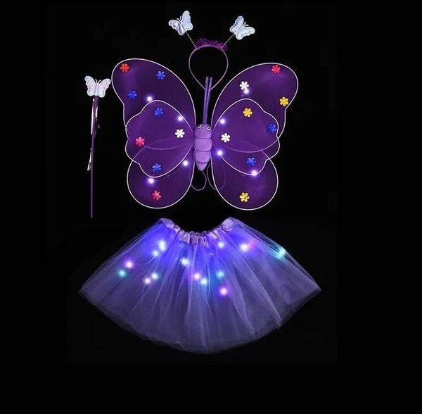 Alimenté par 2 piles bouton (incluses et de remplacement). Mode lumière: brûler. Chaque jupe a 12 papillon dessus. Jupe 3 couches.