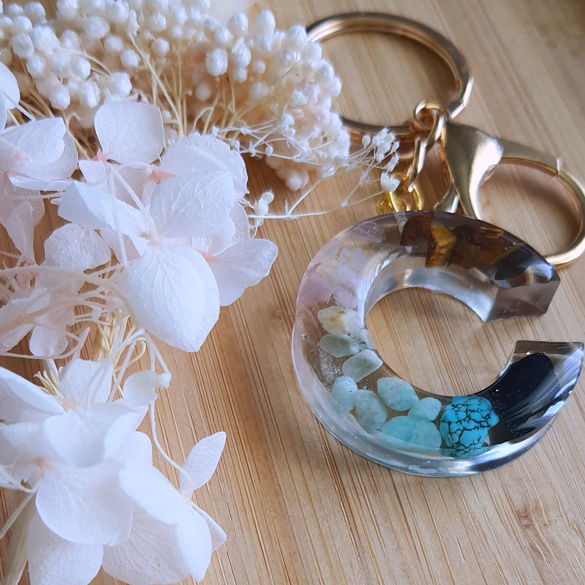 composition : Résine & pierres naturelles (œil de tigre, cornaline, citrine, aventurine, angélite, sodalite et améthyste)
