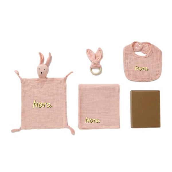 Chaque élément est personnalisé avec le prénom de l'enfant, un détail précieux qui rend ce coffret unique et inoubliable.