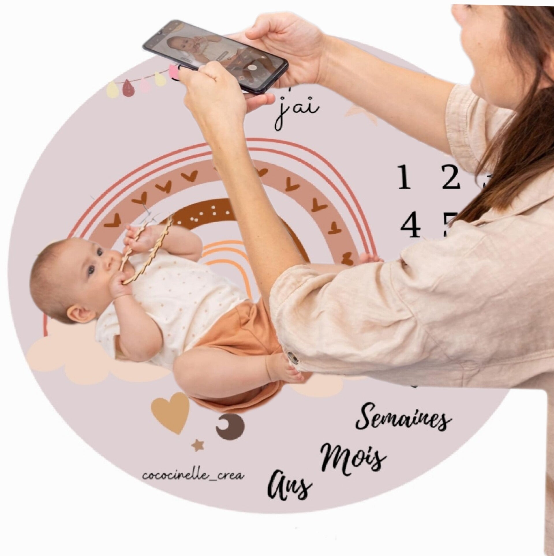 Un Support pour les Souvenirs : Chaque tapis est ponctué de repères tels que les jours, les semaines, les mois et les années. Cela vous permet de photographier votre enfant à différents âges et de créer un album de souvenirs visuel, plein d’émotions.