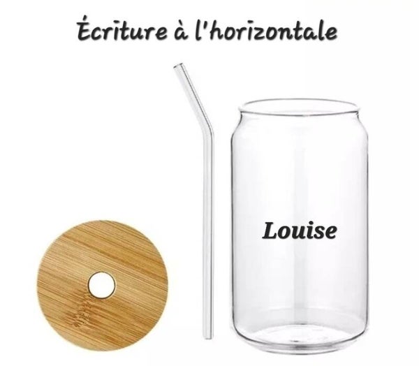 Avec le choix d'inscrire sur le verre un prénom (choix possible: écriture sur le verre à l'horizontale ou à la verticale) ou une petite phrase courte. ex: maman je t'aime ...