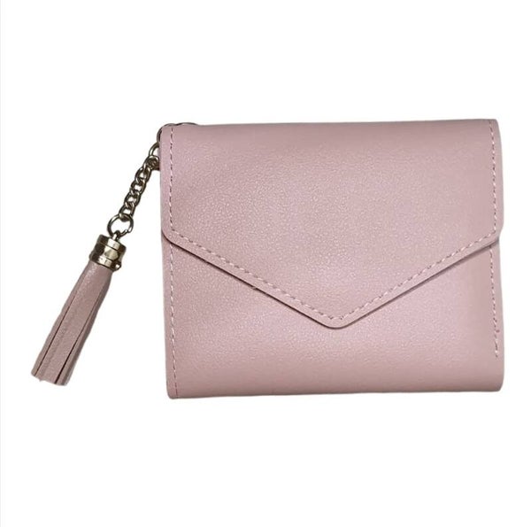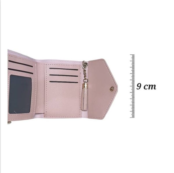 Ce beau porte-monnaie en similicuir rose poudré est composé de: