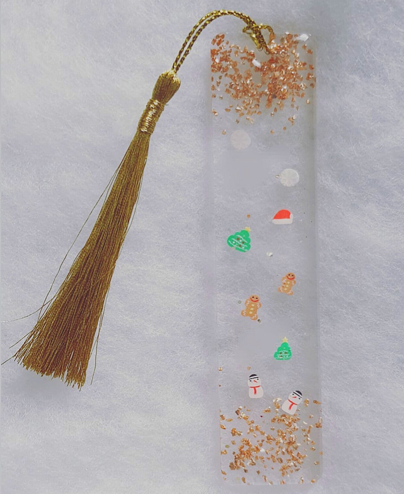 - d'un beau marque page avec des paillettes roses gold et de jolies décorations de NOËL. Personnalisé avec votre prénom ou le prénom de la personne à qui vous allez l'offrir !