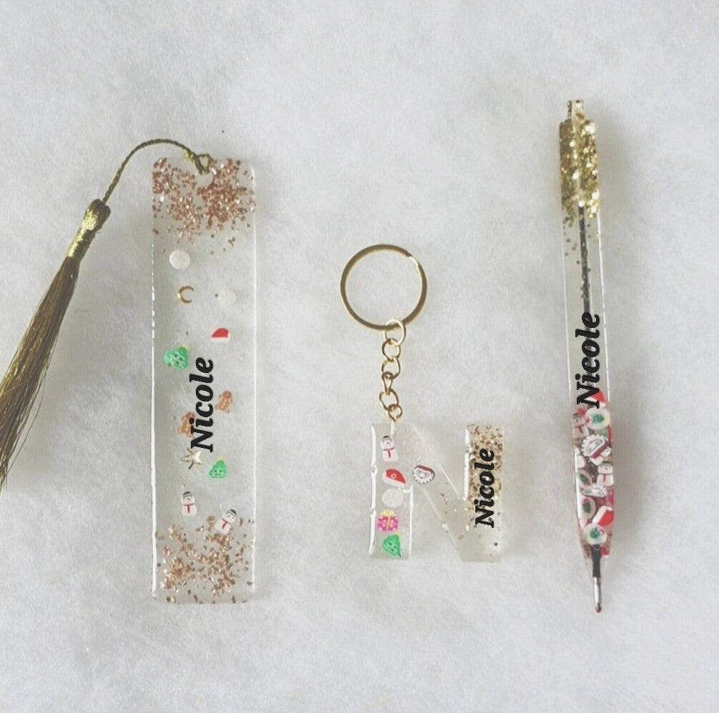 - Un merveilleux stylo avec des paillettes et décorations de NOËL 🎄 personnalisé avec le prénom désiré!